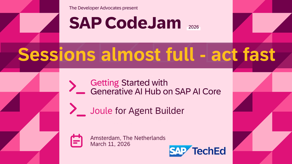 Join us for 3 unforgettable days at Booking.com’s headquarters in Amsterdam, where SAP developers meet the future of AI. Get ready for 4 inspiring keynotes, 1 plenary panel discussion, 22 cutting-edge sessions, and 4 hands-on workshops that will supercharge your skills and expand your network.
